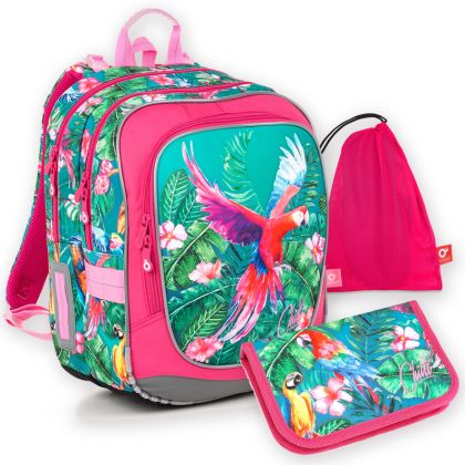 Lehoučký dvoukomorový batoh nejen pro malé milovnice papoušků.