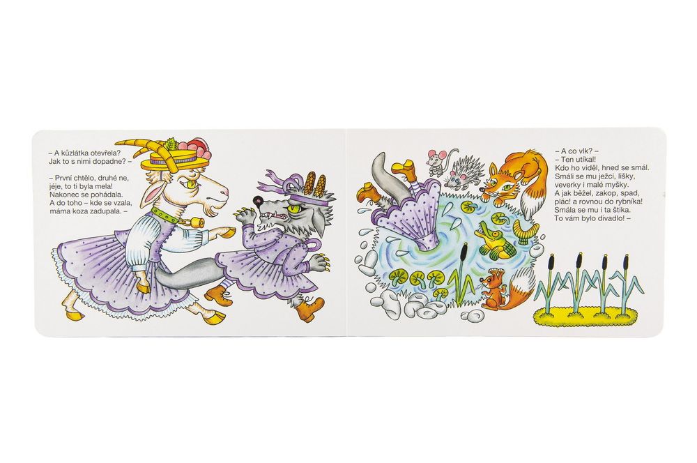 Leporelo s oblíbenou pohádkou pro nejmenší! To jsem já, bradička bílá! Otevřte, kůzlátka milá. Nesu sladké zelíčko, tak otevřte maličko! – Těmito líbeznými slůvky vlk přemlouvá kozlátka, aby mu otevřela, vyparáděný tak, že se musí děti smát, jak mu klobouk s pentlemi padne. Jedna z nejoblíbenějších dětských pohádek s ilustracemi Heleny Zmatlíkové, kterou děti znají nazpaměť od nejútlejšího dětství. Verši doprovází Věra Provazníková.