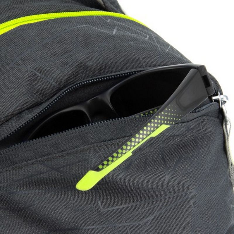 Další síťovaná přihrádka pro láhev či přezůvky je na boku.