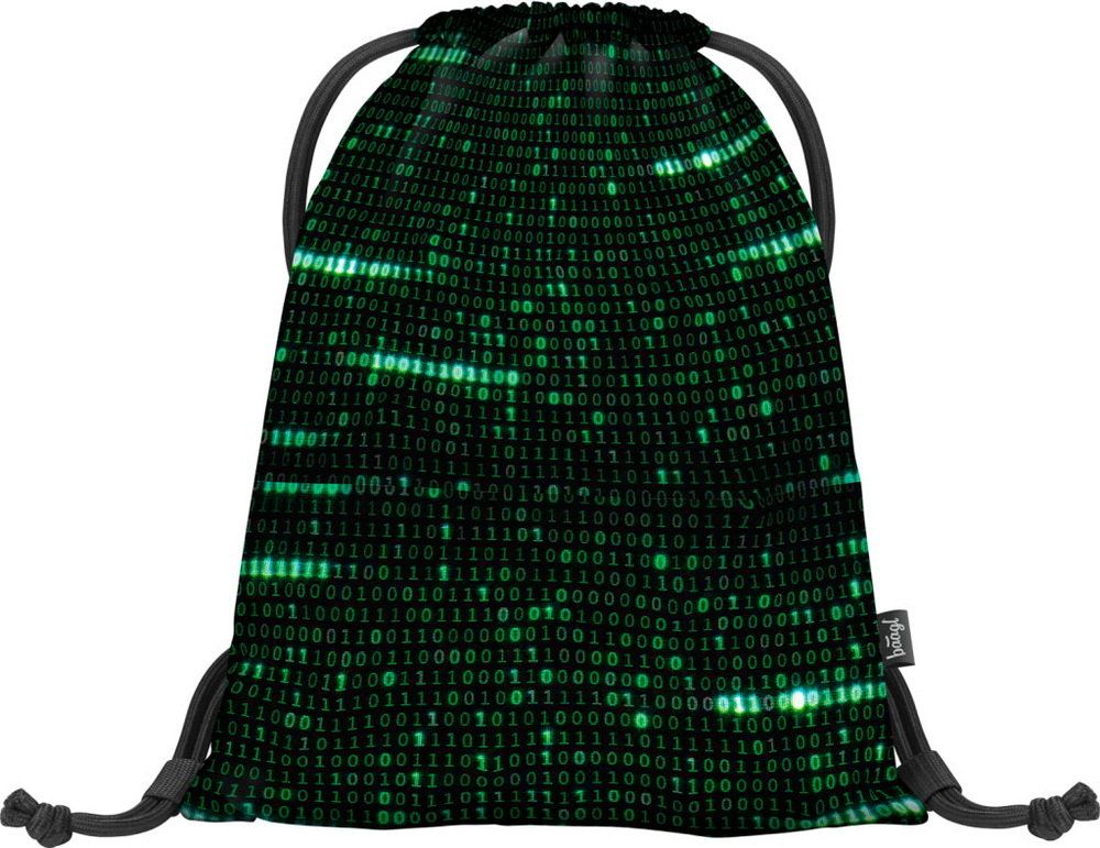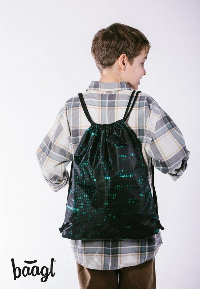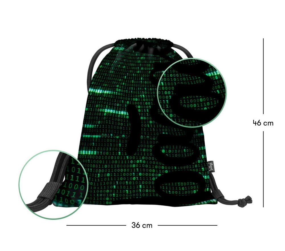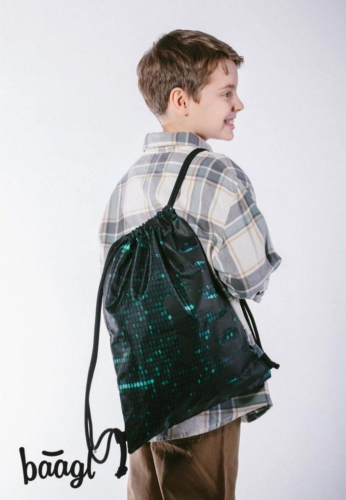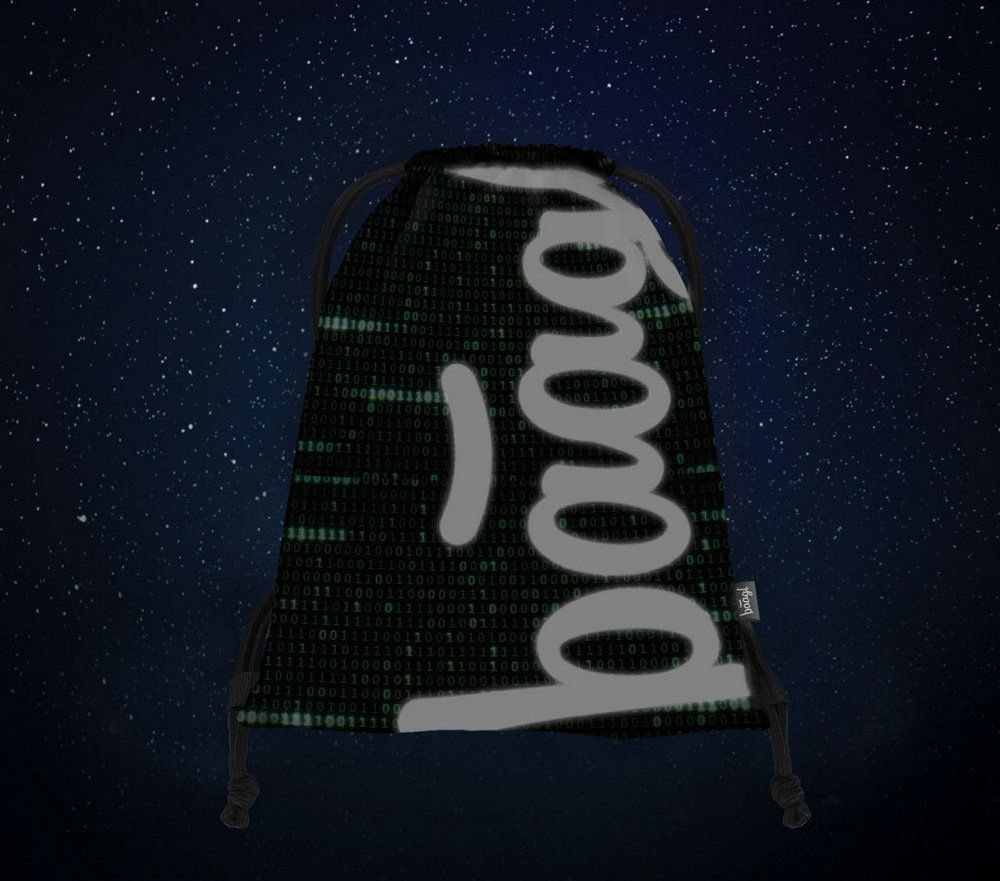 Sáček na boty v tmavé barvě s "matrixovským" designem binárních čísel.