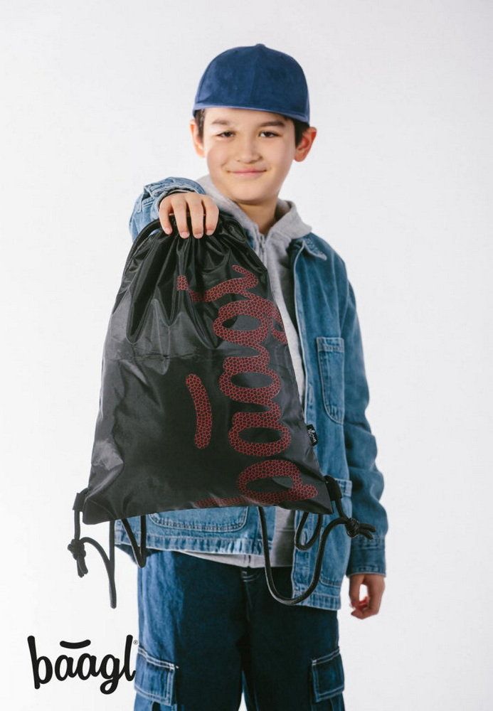 Školní sáček na přezůvky nebo tělocvik s jednoduchým designem loga BAAGL v červenočerné barvě.