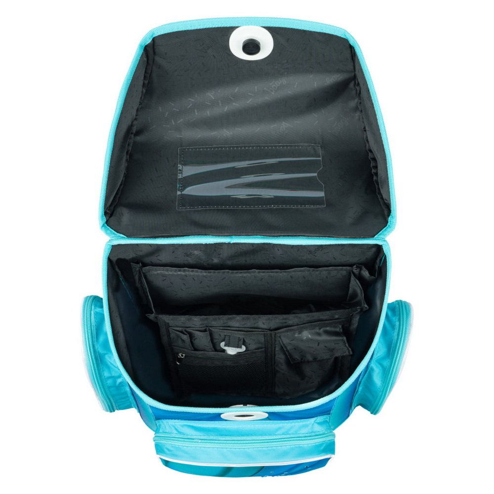 • Uvnitř aktovky je průhledná kapsa s rozvrhem a vnitřní organizér umožňující rovnoměrné rozložení hmotnosti.