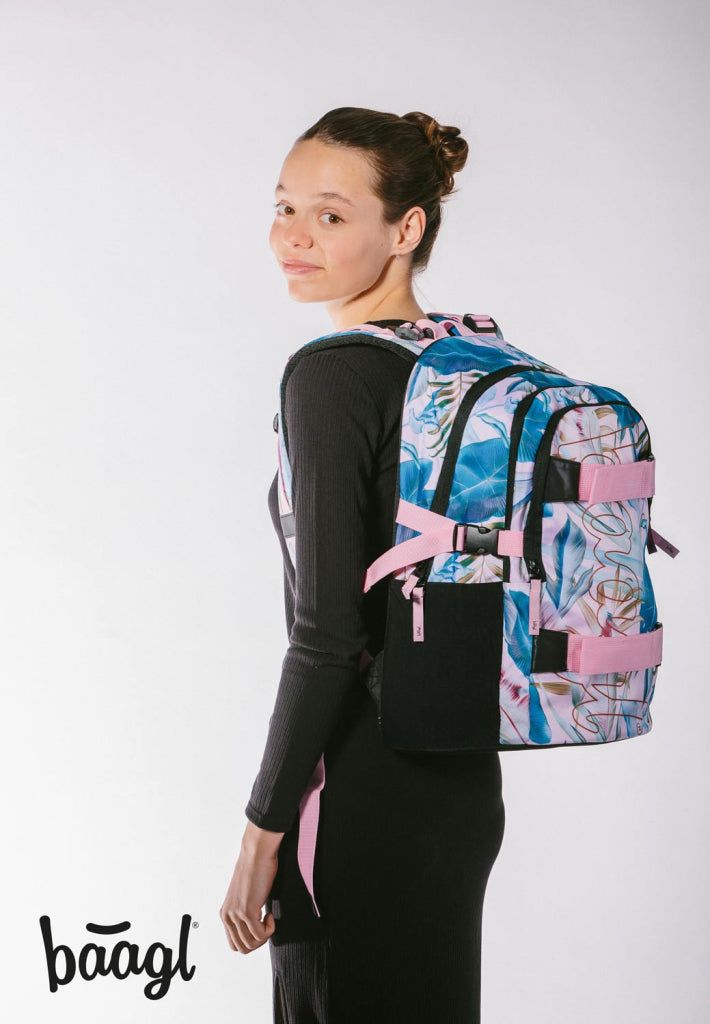 Dívčí batoh typu Skate v trendy designu tropických listů ocení mladé slečny. Batoh je vhodný od 3. třídy 1. stupně ZŠ a také pro 2. stupeň ZŠ.