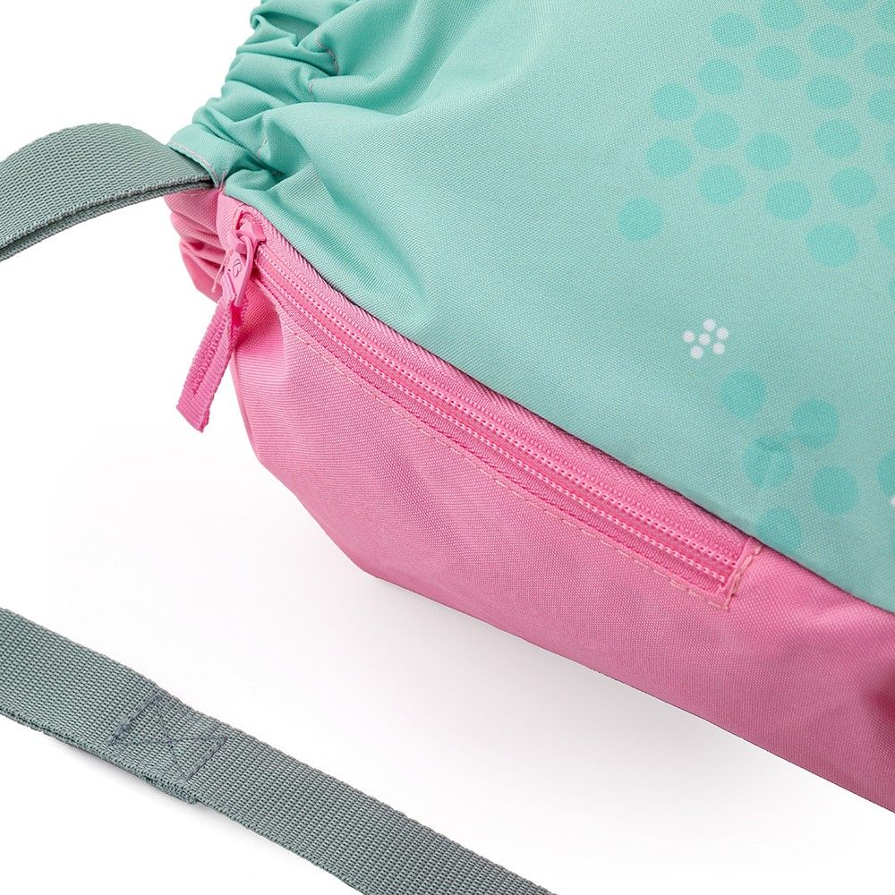 Drobnější věci si může školačka schovat do kapsy na zip, která je přes celou šířku horní části vaku.