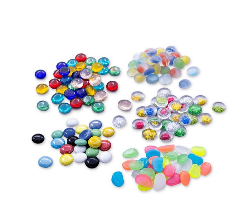 Box obsahující 150ks plochých a atypických kuliček (tvar čočky, fazole, šišaté apod.) pro hraní kuliček na hřišti nebo na zahradě! 5 různých stylů mramorů: neprůhledné, matné, se třpytkami, průhledné a dokonce i fosforeskující.