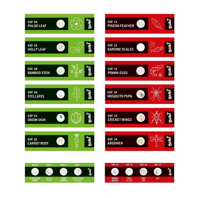 Vzorky jsou rozděleny do dvou skupin rostlinné a živočišné, takže je lze snadno rozlišit. Preparáty jsou označené a popsané.