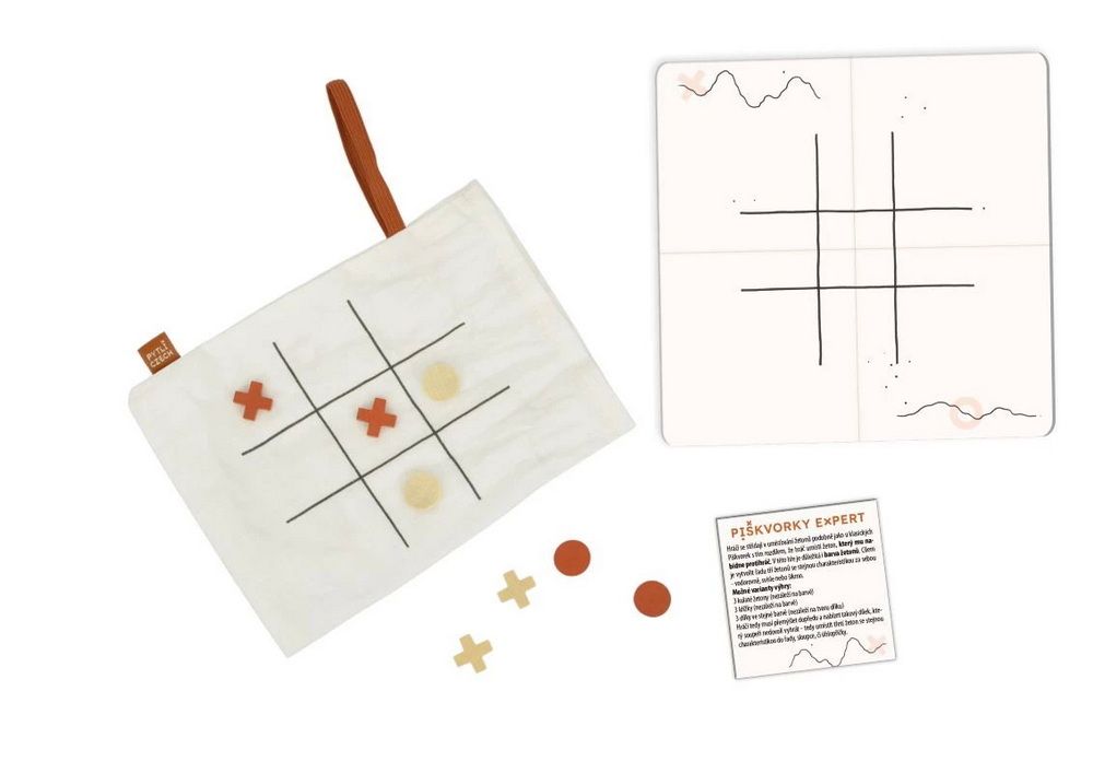 S Piškvorkami Expert vás čeká blesková strategická hra, která obvykle trvá jen 2-3 minuty. Je ideální na zkrácení dlouhých chvil při čekání na vlak nebo na občerstvení v horské chatě. Dřevěné žetony můžete pokládat buď na zadní stranu bavlněného pytlíčku nebo na kartonový herní plán. Je jen na vás, co vám vyhovuje více.