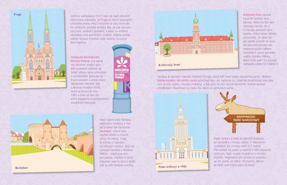 Oblíbená série minimiki přichází s další novinkou v podobě zábavné samolepkové knížky, v níž budou děti společně s panenkou Ewou a jejími kamarádkami Agnieszkou a Olgou objevovat nejznámější kouty polské metropole Varšavy. Známé varšavské scenerie mohou podle vlastní fantazie doplňovat spoustou krásných samolepek, které jsou opakovaně použitelné! V knížce najdou i mnoho zajímavých informací o tamních památkách a známých místech.