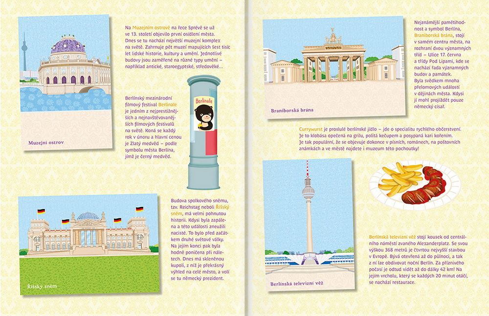 Oblíbená série minimiki přichází s další novinkou v podobě zábavné samolepkové knížky, v níž budou děti společně s panenkou Hannou a jejími kamarádkami Else a Steffi objevovat nejznámější kouty německého hlavního města Berlína, jedné z nejkrásnějších evropských metropolí. Známé berlínské scenerie mohou podle vlastní fantazie doplňovat spoustou krásných samolepek, které jsou opakovaně použitelné! V knížce najdou i mnoho zajímavých informací o zdejších památkách, ale také třeba o historii tohoto města.