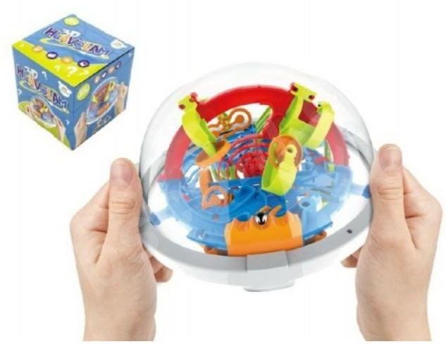 Koule s bludištěm uvnitř, kde musíte kuličku dovést jejím opatrným převracením až do cíle.