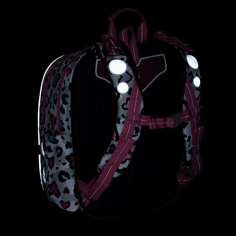 Posviťte si na batoh ve tmě a uvidíte, kolika reflexními prvky je opatřen. Překračuje doporučené množství reflexních prvků, proto vaše dítě nikdo ve tmě nepřehlédne.