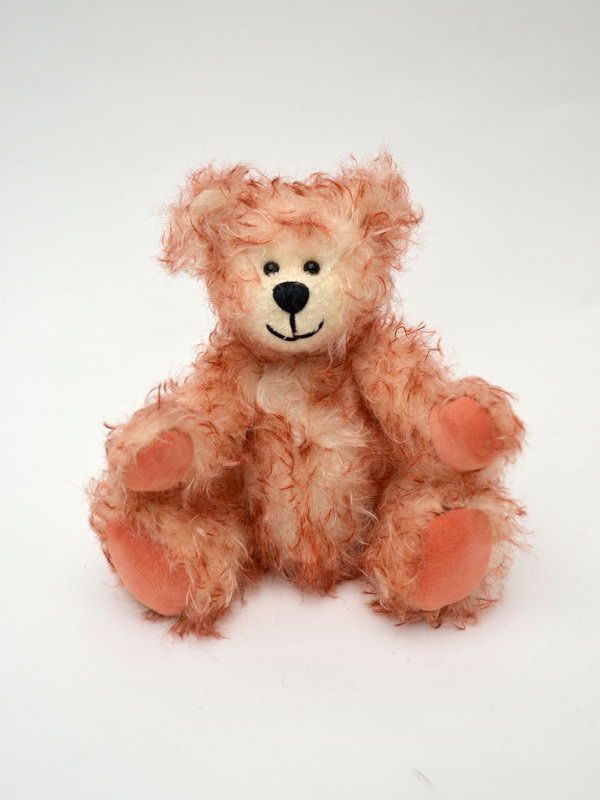 Medvídek s tradiční konstrukcí pohyblivých končetin z pravého mohéru. Limitovaná číslovaná kolekce v dárkové krabičce. Vyrobeno v ČR.