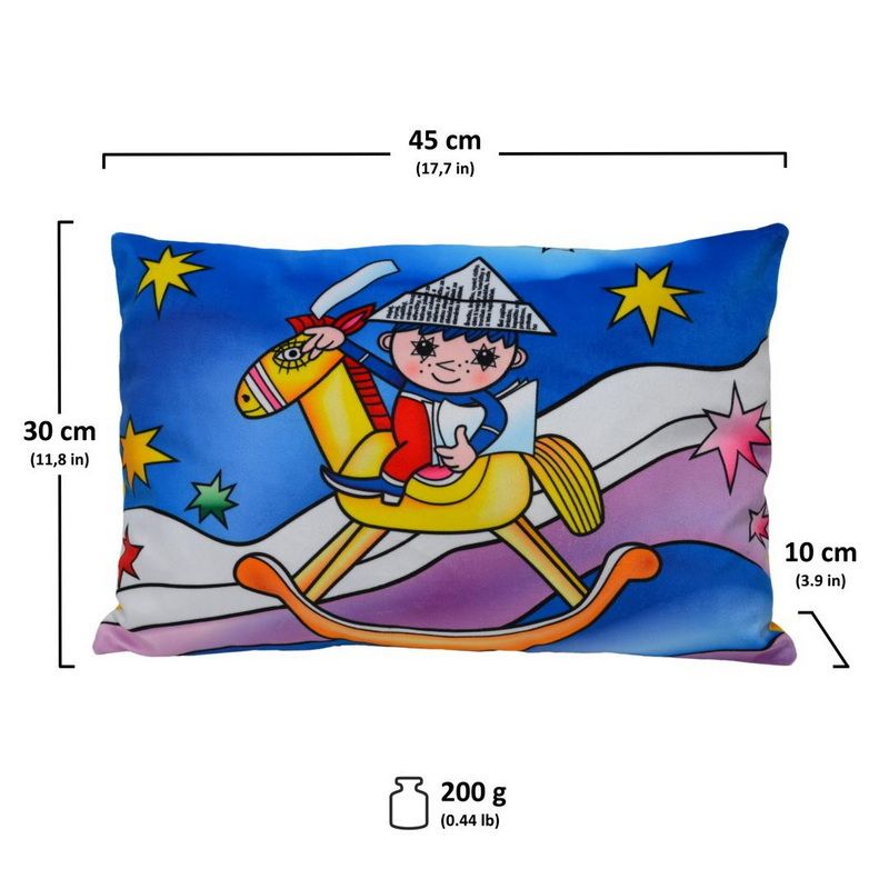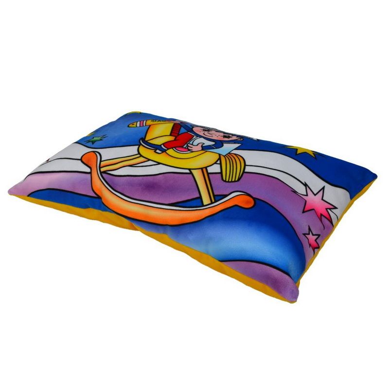 Měkoučký polštářek, vhodný do postýlky, na cesty i jako dekorace do pokojíčku. Materiál mikrovelur, obrázek tisk, náplň duté vlákno. Zadní strana žlutá. Praní na 30°C, 100% polyester.
