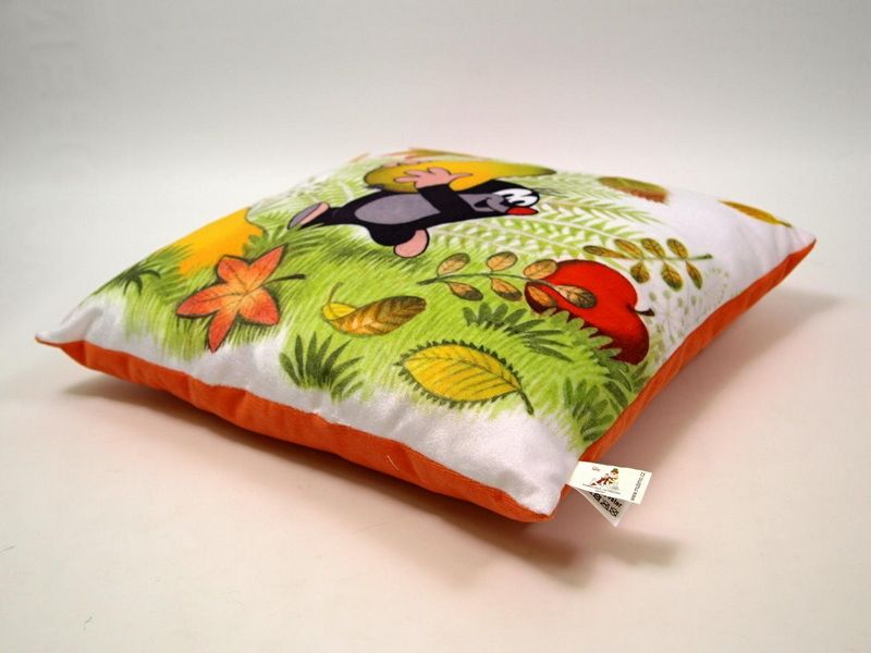 Měkoučký polštářek s motivem oblíbeného Krtečka, vhodný do postýlky, na cesty i jako dekorace do pokojíčku. Materiál mikrovelur, obrázek tisk, náplň duté vlákno. Zadní strana oranžová. Praní na 30°C, 100% polyester.