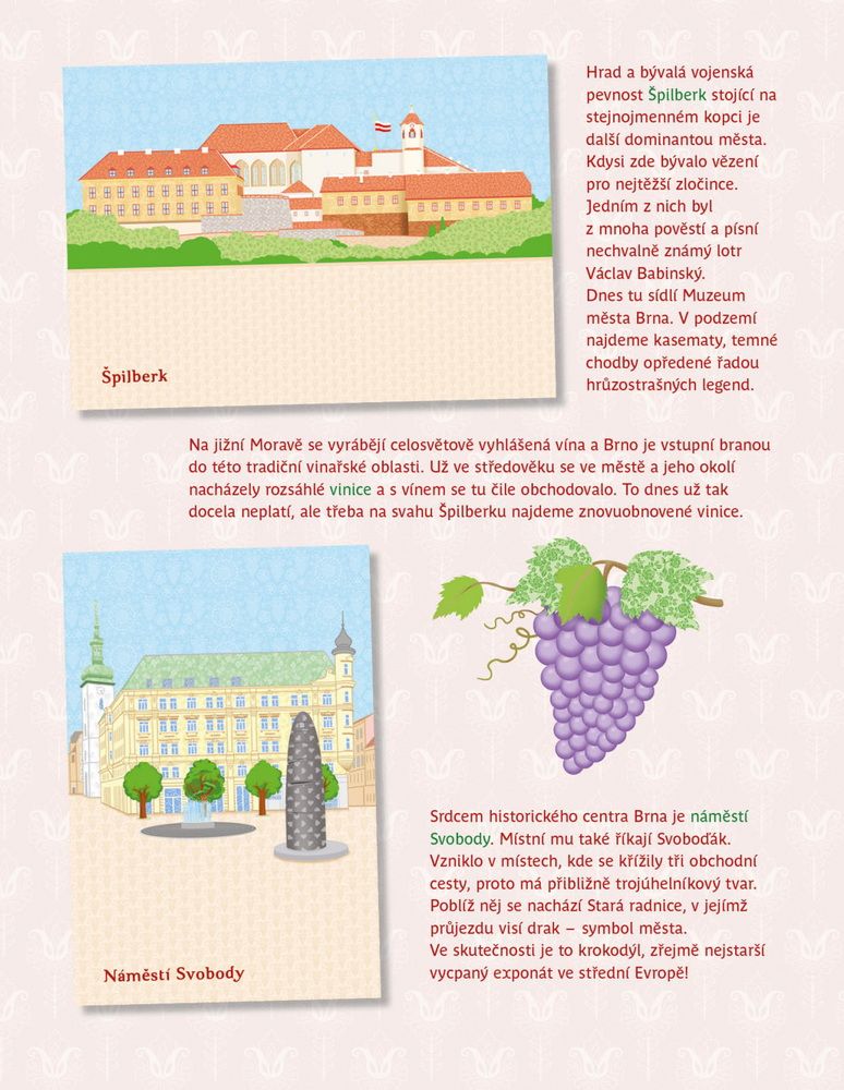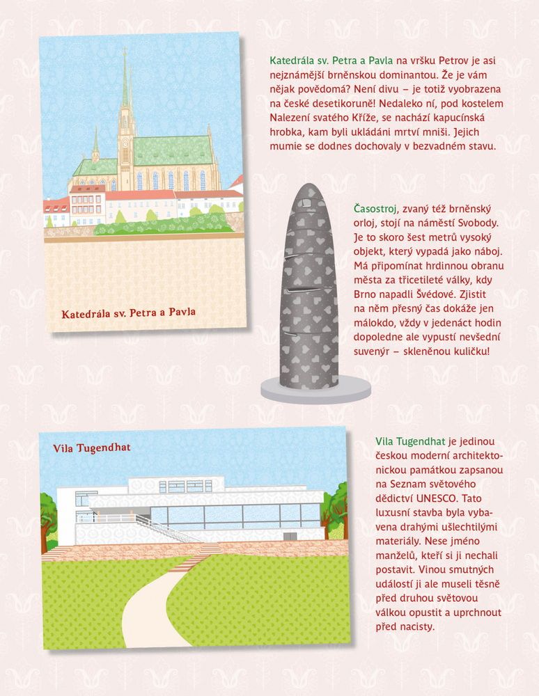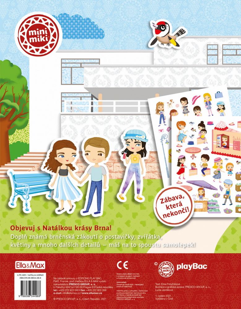 Oblíbená série minimiki přichází s další novinkou v podobě zábavné samolepkové knížky, v níž budou děti společně s panenkou Natálkou a jejími kamarádkami Veronikou a Nelou objevovat nejznámější kouty moravské metropole Brna. Známé brněnské scenerie mohou podle vlastní fantazie doplňovat spoustou krásných samolepek, které jsou opakovaně použitelné! V knížce najdou i mnoho zajímavých informací o zdejších památkách, známých místech, ale také třeba o místním folkloru.