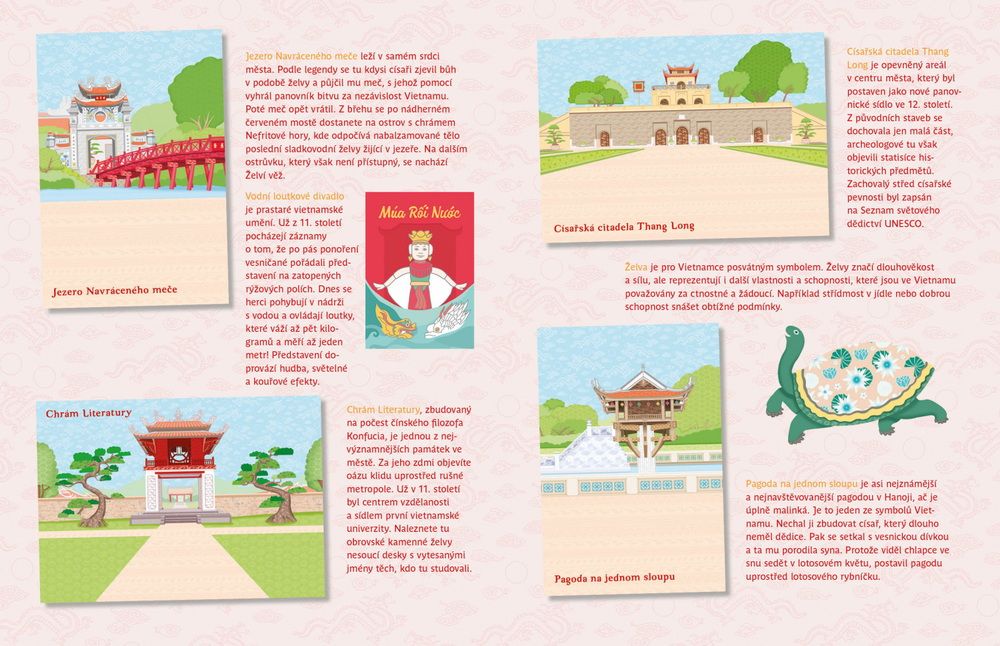 Oblíbená série minimiki přichází s další novinkou v podobě zábavné samolepkové knížky, v níž budou děti společně s panenkou Ngoc a jejími kamarádkami objevovat nejznámější kouty vietnamské metropole Hanoje. Známéhanojské scenerie mohou podle vlastní fantazie doplňovat spoustou krásných samolepek, které jsou opakovaně použitelné! V knížce najdou i mnoho zajímavých informací o tamních památkách, známých místech, ale také třeba o vyhlášených specialitách hanojské kuchyně.