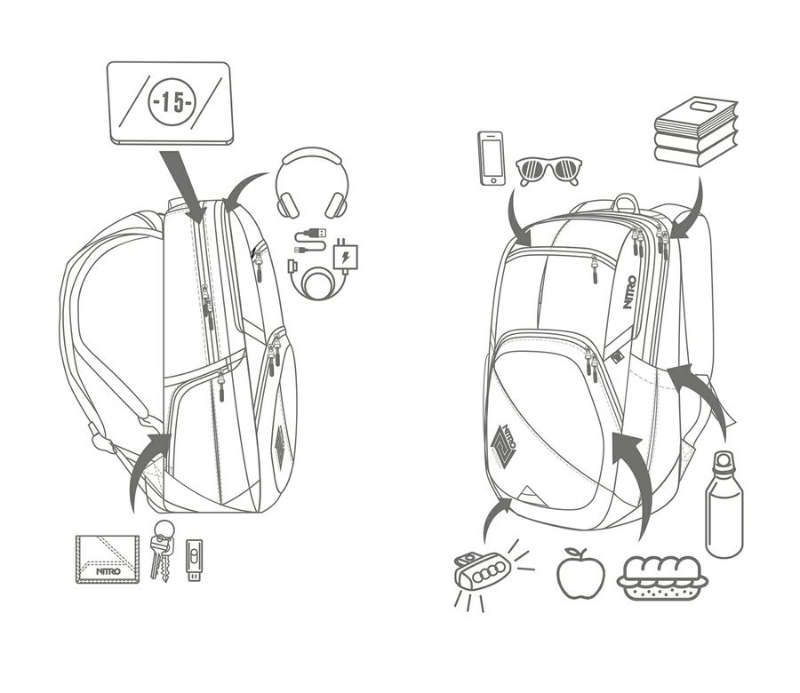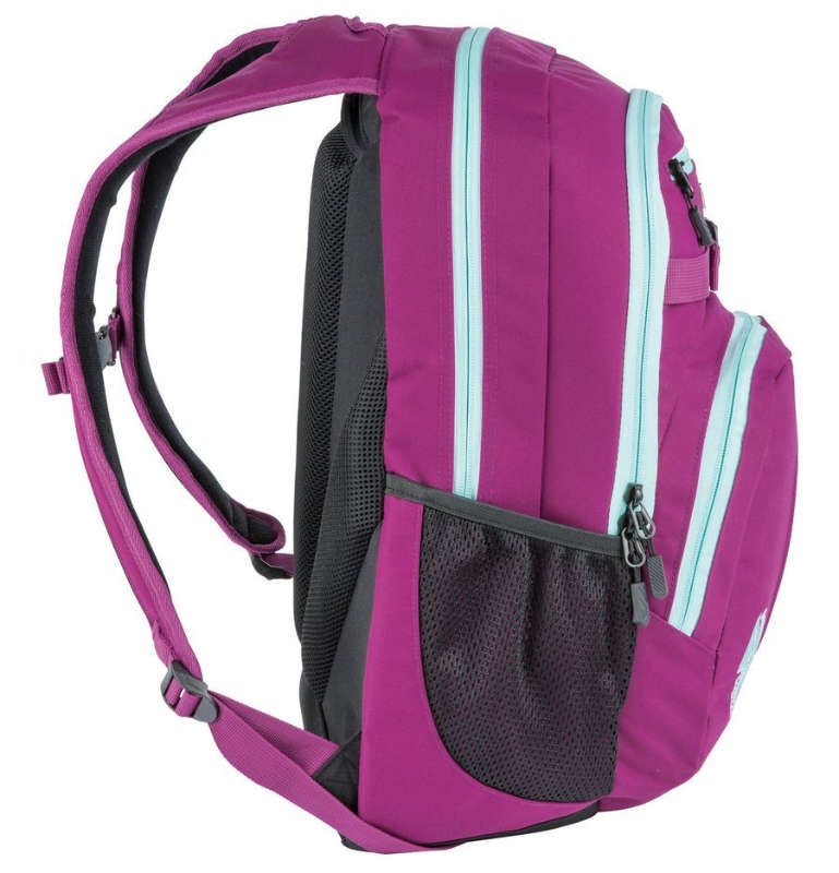 Textilní batoh. . Fleecem vystlaná kapsa na brýle a podobně choulostivé věci, vypolstrovaná kapsa na 17" notebook - skrytá pod "zády" batohu a na samostatný, nenápadný zip. Dvě hlavní prostorná oddělení, prostorný organizér, vnitřní kapsa na suchý zip, vhodná pro nabíječky, kabely atd., popruh na skateboard, boční síťka na lahev, boční polstrovaná kapsa na zip.