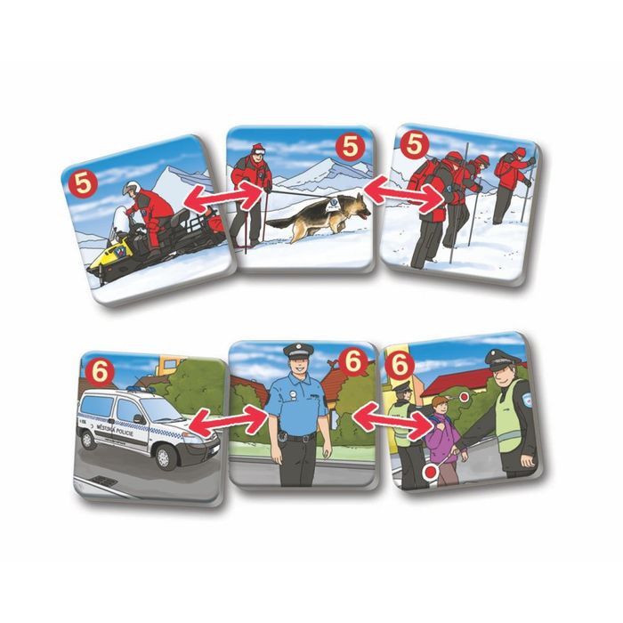 Při hře otáčej tři kartičky a hledej trojice, které patří k sobě! Každá trojice kartiček je opatřena stejným identifikačním znakem. Tyto společenské hry jsou výborné didaktické pomůcky.