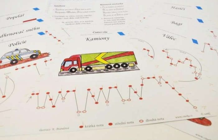 Máte doma kluka nebo holčičku, která má ráda autíčka a neznáte žádnou písničku o bagru, nebo třeba o odhrnovači sněhu? Pomoci vám může citerková sada Písničky (nejen) pro kluky obsahující 14 písní s obrázky s technickou tematikou: