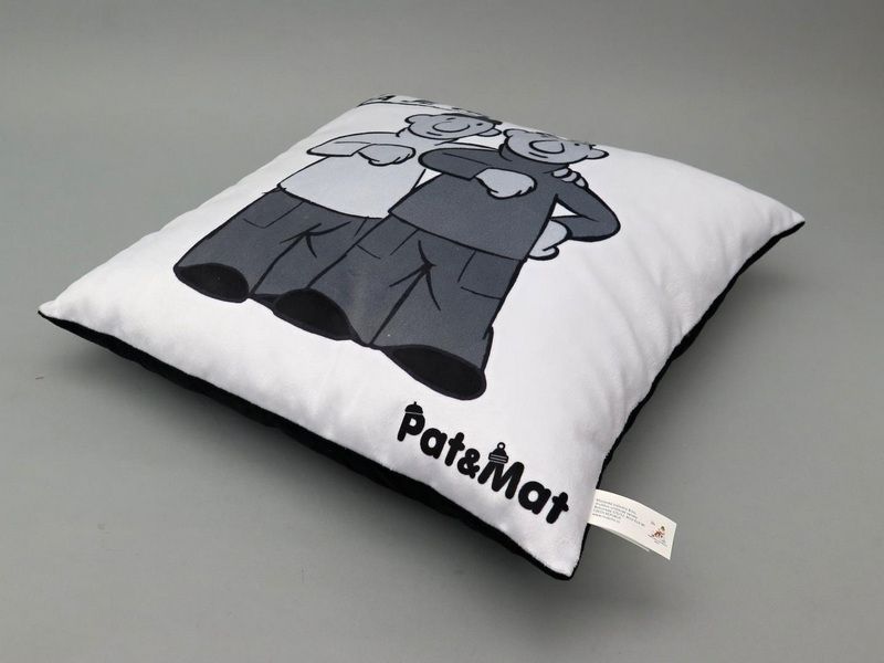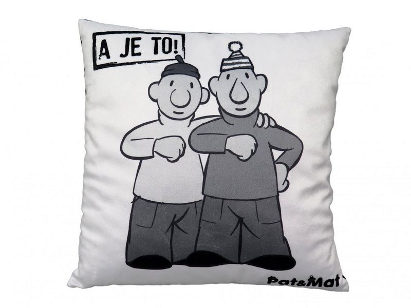 Měkoučký polštářek s motivem oblíbených kutilů Pata a Mata. Vhodný do postýlky, na cesty i jako dekorace do pokojíčku. Materiál mikrovelur, obrázek tisk, náplň duté vlákno.