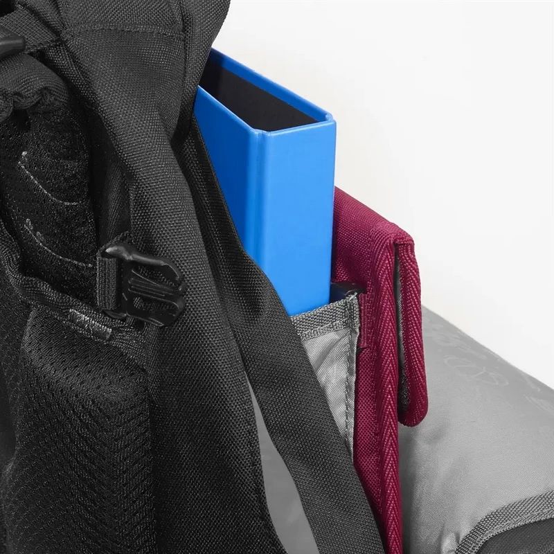 - V závislosti na velikosti obalu a konstrukci batohu připevněte obal buď na poutka v přihrádce organizéru nebo pomocí klipů do přihrádky na desky v hlavní kapse, snadná manipulace