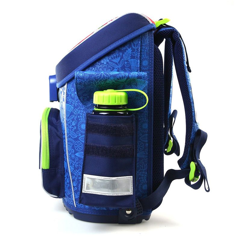 Na aktovce naleznete spoustu bezpečnostních prvků v podobě reflexních pásek.