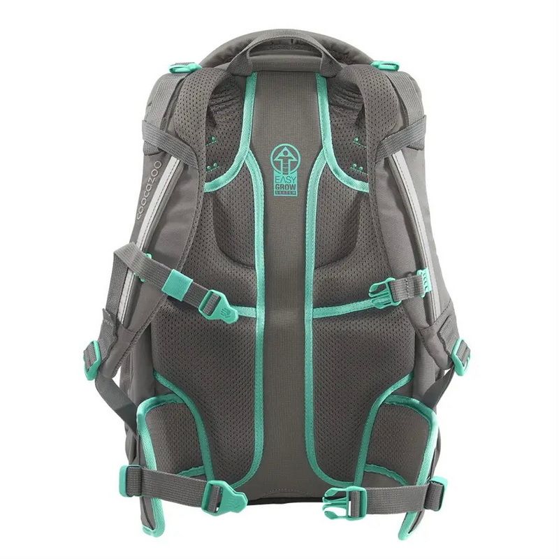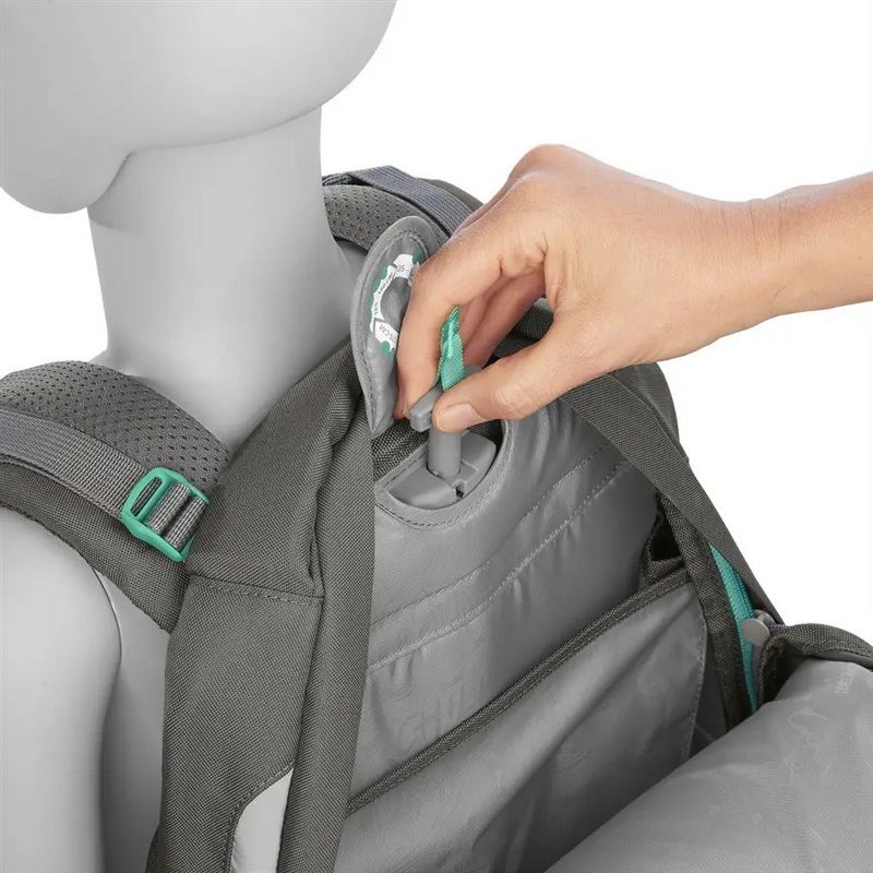 - možnost plynulého výškového nastavení ramenních popruhů pomocí otočného mechanismu uvnitř aktovky zajišťuje přesné nastavení ramenních popruhů přímo na zádech dítěte (ergonomické přizpůsobení podle velikosti zad)