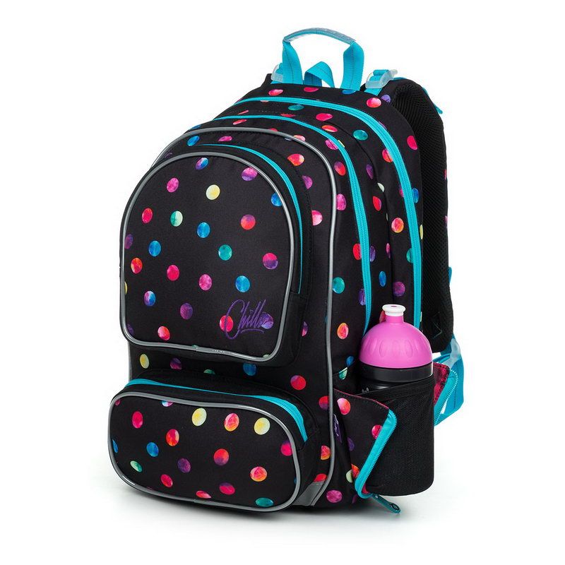 Oblíbený dvoukomorový střih batohu, s dvěma předními kapsičkami, ocení všechny dívky od 2.třídy výše. Pokud se ale vaše dcera chystá do první třídy, má nad 120 cm a líbí se jí, klidně jej může mít! Navíc, puntíky nikdy nevyšly z módy!