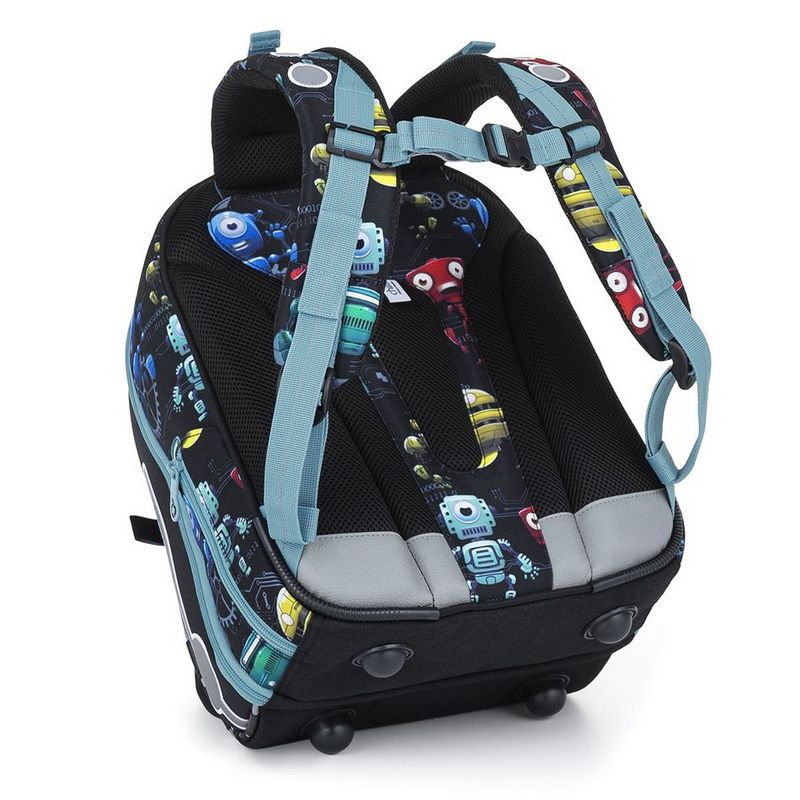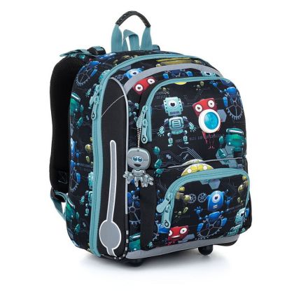Model BEBE je nejmenší batoh z naší nabídky. Jde o kompromis mezi aktovkou a školním batohem, který jsme vyvinuli speciálně pro malé děti s výškou 110 cm. O nadčasovost designu se postará skupinka robotů. Protože co jiného s nastupující robotizací můžeme dát na klučičí batoh?!