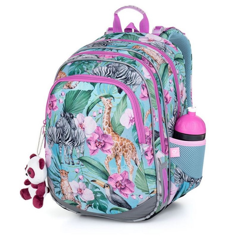 Model ELLY neváží ani kilogram, proto je ideální pro holčičky od první až do čtvrté třídy ZŠ. Rozkvetlé Safari plné žiraf, zeber, gepardů a tukanů navštívila také plyšová panda.