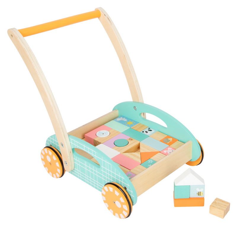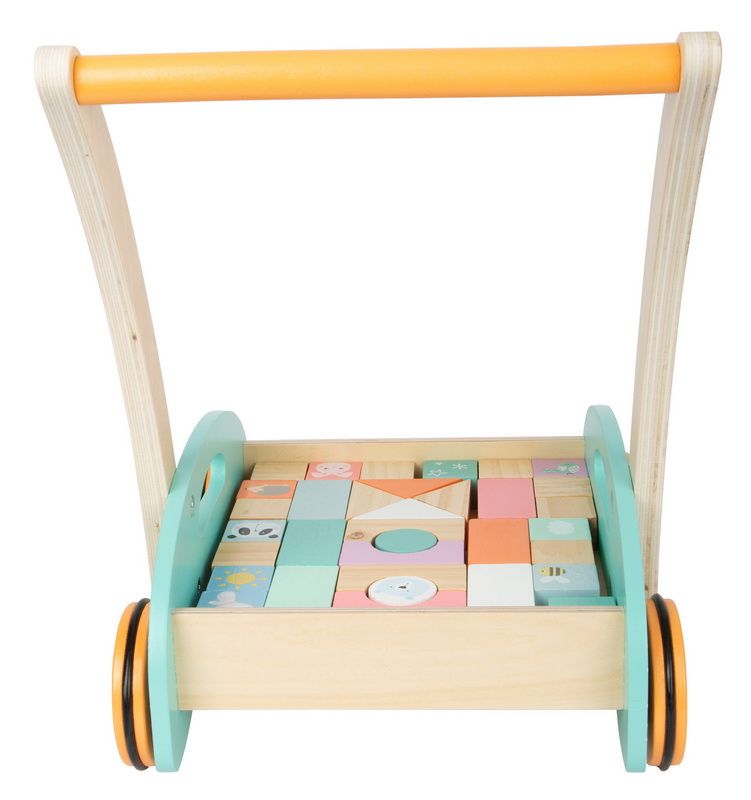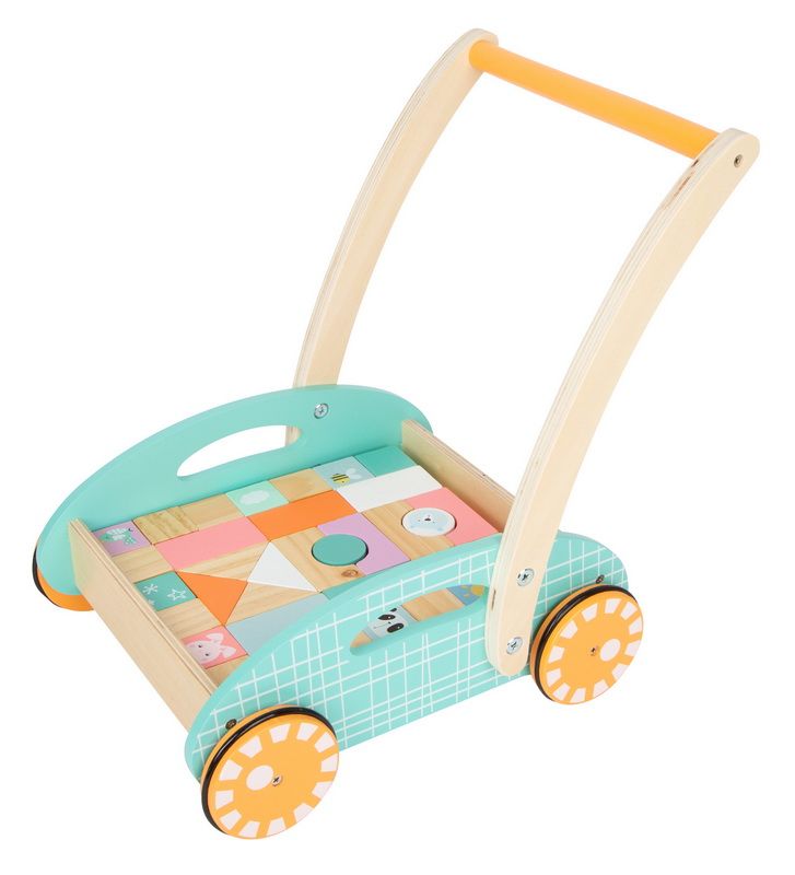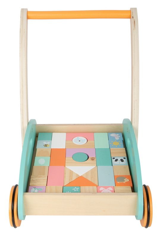 Naučte se chodit s králíčkem, pandou, ptáčkem, motýlkem, ježkem... Toto dětské chodítko v trendy pastelových barvách podpoří děti při prvních krůčcích. Je v něm také uloženo 34 kostek, bezbarvých i pastelových, které rozvíjí prostorovou představivost, motoriku, kreativitu a um rozpoznat tvary. Pogumovaná kola zajišťují tichý chod a radost z jízdy. Tohle krásné chodítko s důsledným designovým konceptem a mnoha krásnými detaily, je pro děti velmi atraktivní. Chodítko se stavebními kostkami je součástí produktové řady „Pastel“ a zaujme vysokým viditelným podílem dřeva a moderním zabarvením v pastelových barvách.