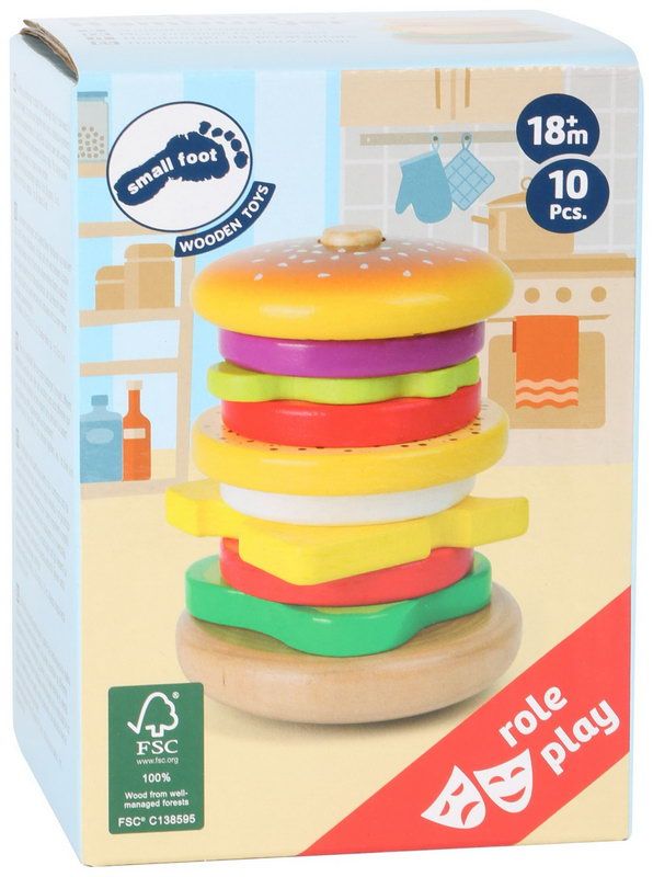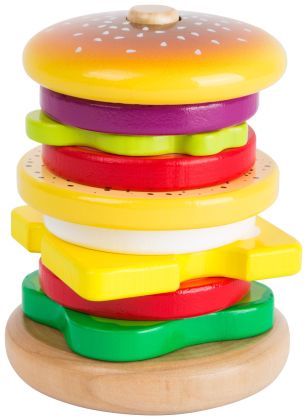 Vyrob si ten nejchutnější hamburger až do nebe! Výroba vyžaduje trochu šikovnosti a procvičuje motoriku zábavným způsobem. Představivosti se meze nekladou. Vyrobeno z kvalitního dřeva, FSC certifikováno.