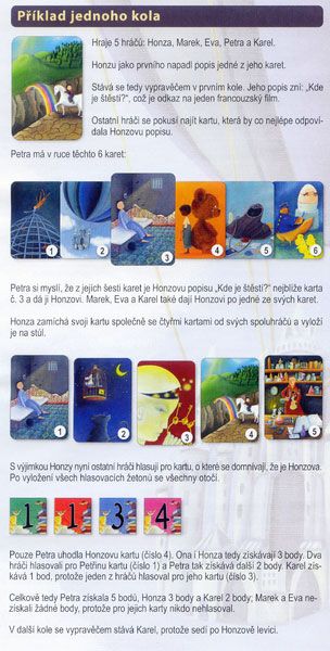 Na začátku hry dostane každý hráč do ruky několik obrázkových karet. Ty jsou poměrně nezvyklé, obrázky jsou velice různorodé a netradičně zpracované. Jeden z hráčů se stane vypravěčem - vybere si tajně jednu kartu z ruky a na základě jejího obrázku řekne nějaký příběh, třeba i jednu větu, jedno slovo nebo zvuk, které se pojí k této kartě. Ostatní hráči se pokusí najít mezi svými kartami tu, která nejlépe vystihuje vypravěčův příběh. Poté všichni hráči včetně vypravěče dají karty lícem dolů na hromádku na stůl, karty se zamíchají a vyrovnají lícem nahoru do řadu. Hráči pak skrytě tipují, která karta je vypravěče a nejlépe tak vystihuje řečený příběh. Hráči, kteří správně tipovali a vypravěč obdrží za každé správné určení karty body. Správné odpovědi jsou hodnoceny posunováním dřevěných králíčků - figurek - po bodovací stupnici, která je vtipně umístěna uvnitř krabice od hry. Vypravěčem se pak stává další hráč v pořadí a kolo se opakuje. Vítězem je pak ten hráč, který získá na konci hry nejvíce bodů.
