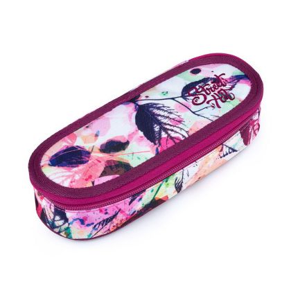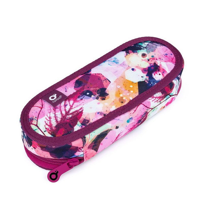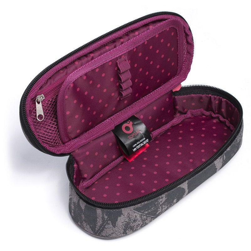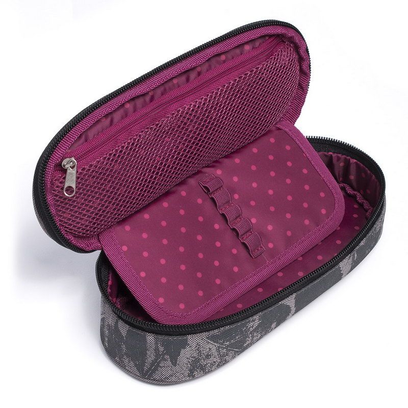 Oválný penál pro všechny potřebnosti ocení spíše starší školáci. Uvnitř pouzdra je síťová kapsička na zip a klopa, na níž jsou umístěny gumičky pro uchycení celkem devíti tužek a propisek, které je potřeba mít přehledně uspořádané a po ruce. Volný prostor pod klopou pak umožňuje volně umístit další psací potřeby – pastelky, fixy, prostě cokoliv potřebujete.