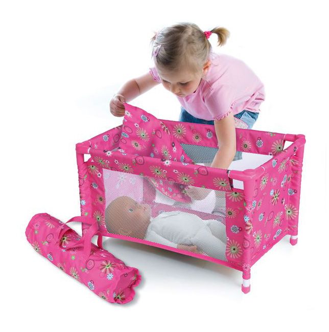 Kouzelná cestovní postýlka pro panenky s průhlednými bočnicemi. Jednoduchá montáž, skladný výrobek. Panenka bude mít vždy kde spát.