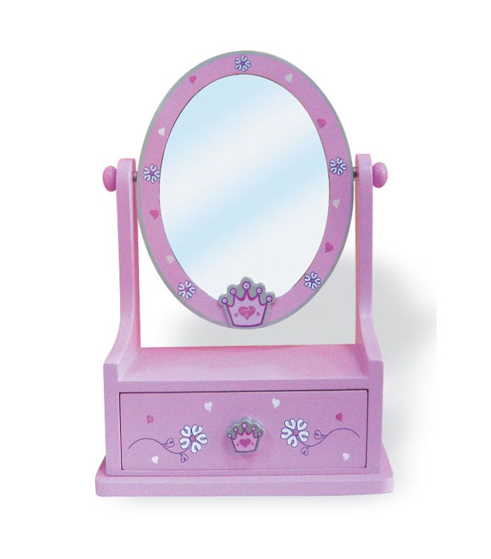 Šperkovnice- má oválné zrcadlo a prostorný šuplík. Vyrobená je z růžově natřeného dřeva a nemůže chybět ve výbavě žádné princezny